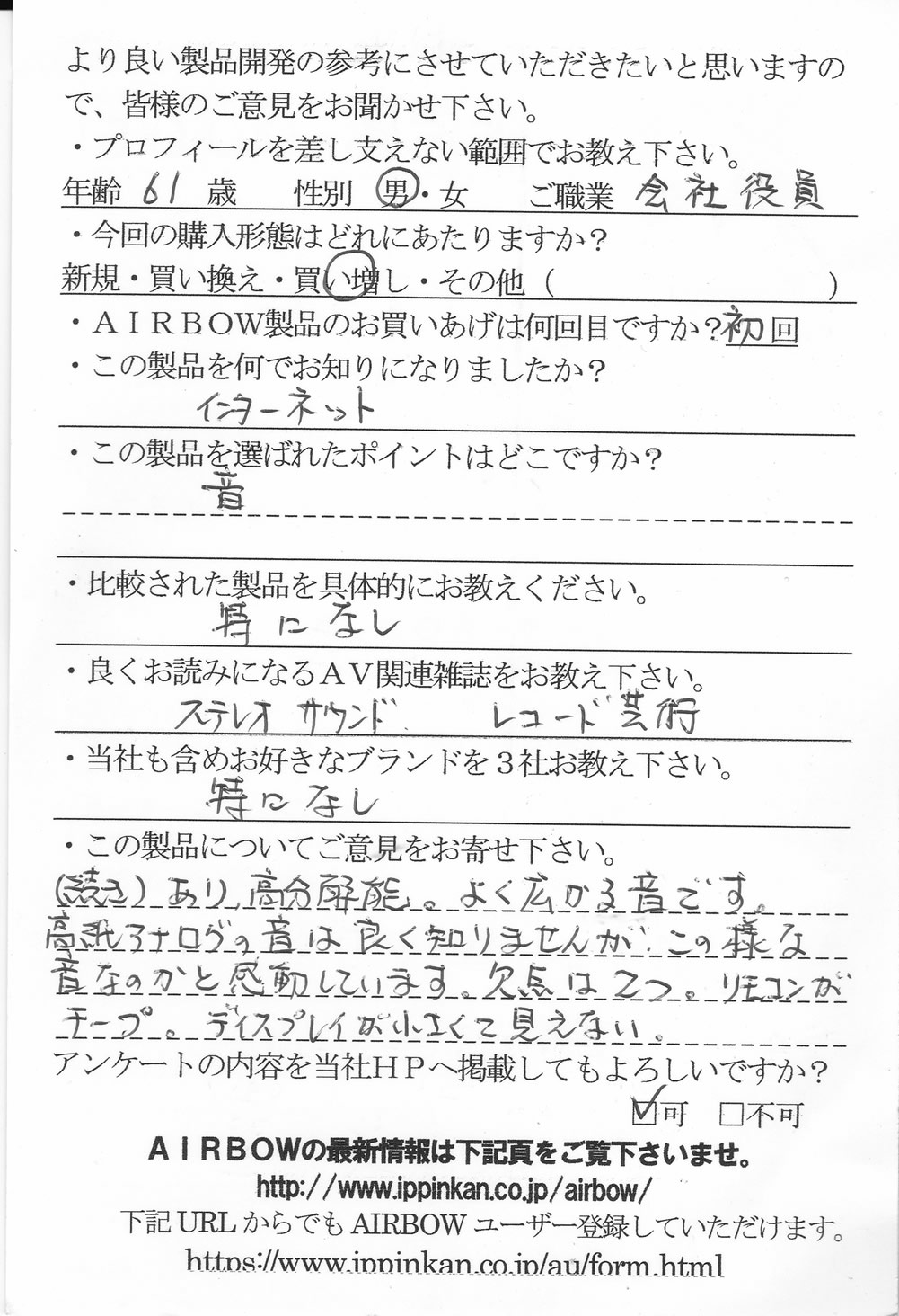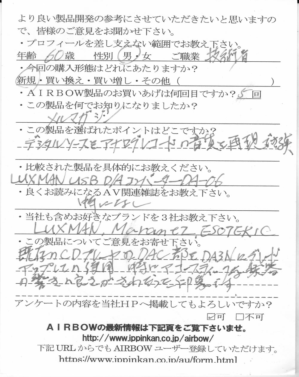 CD以外のデジタル音も全て良くなりました。他のDACと比べて音が前に出てきます。小音量でも誠に綺麗な音です。