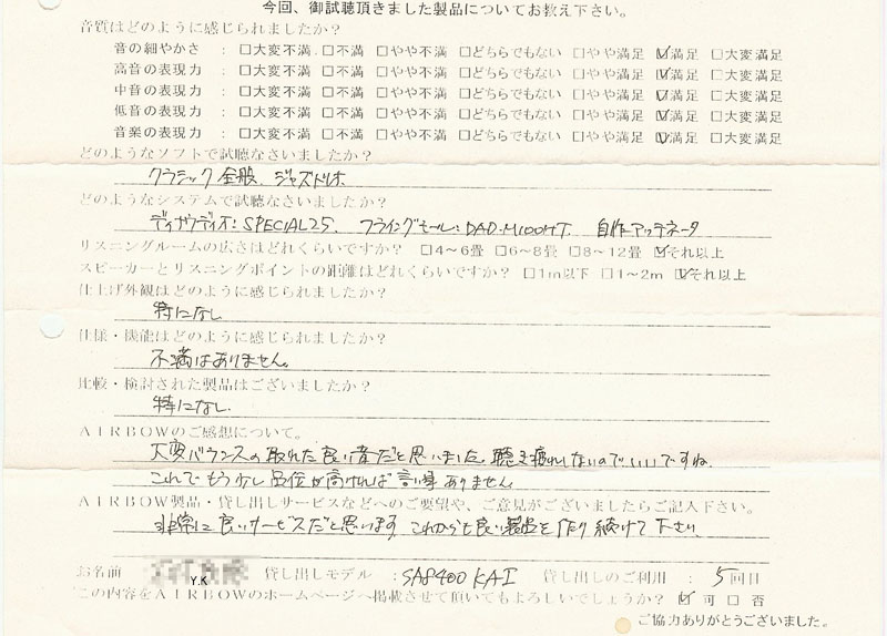 Y.K様 貸し出し