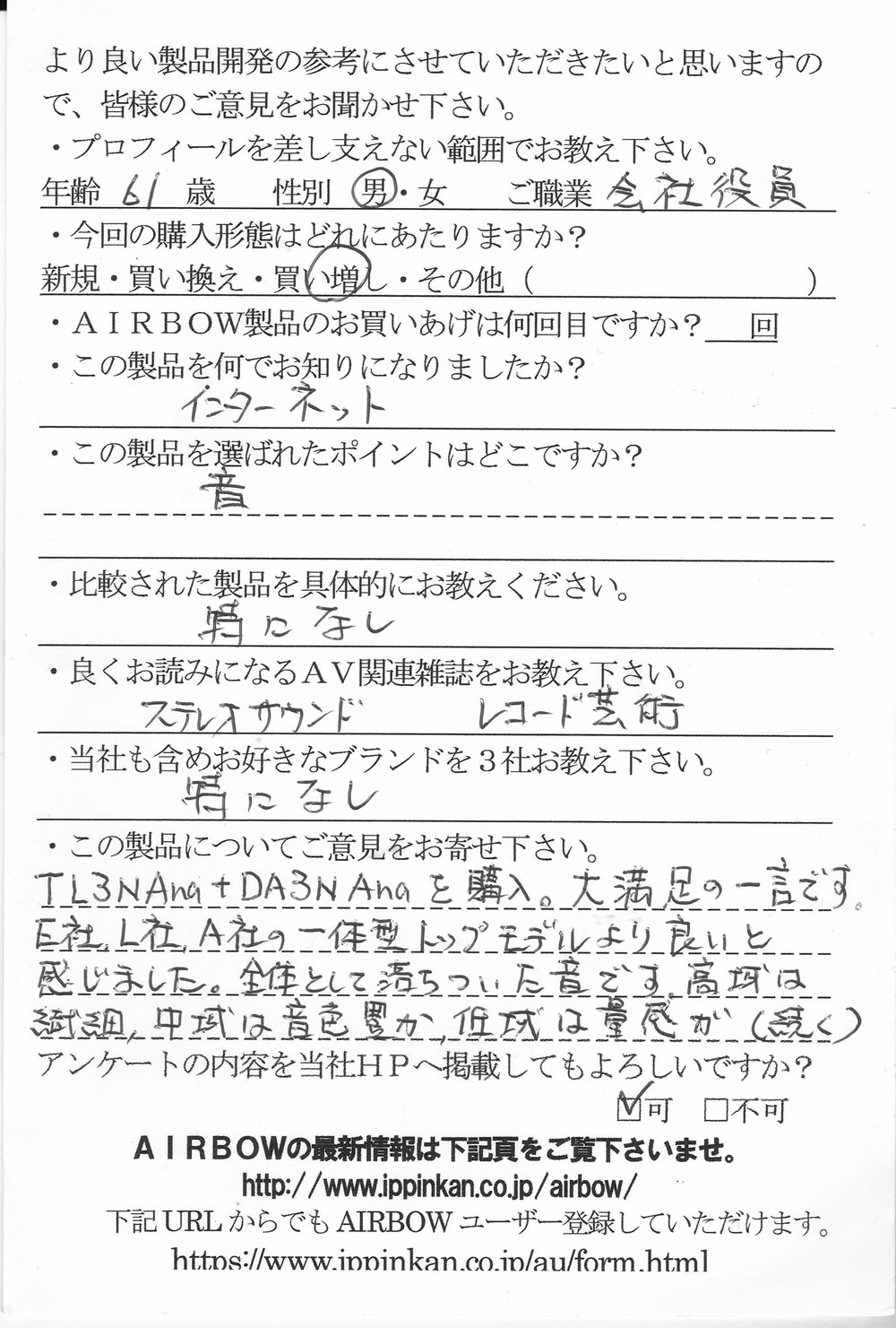アナログを超えることは出来ませんが、十分すぎるほど肉迫しており、とても生々しい。そしてやさしい音です。 S.Y.様 ユーザー